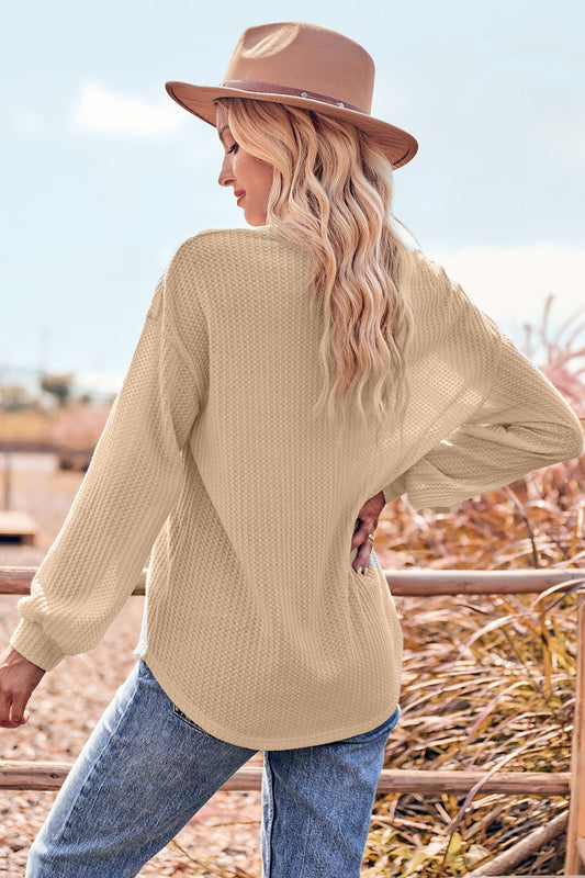 V-Neck Dropped Shoulder Waffle-Knit Blouse