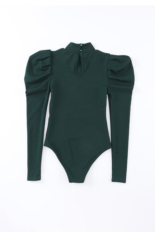 Surplice Neck Long Puff Sleeve Lace Bodysuit