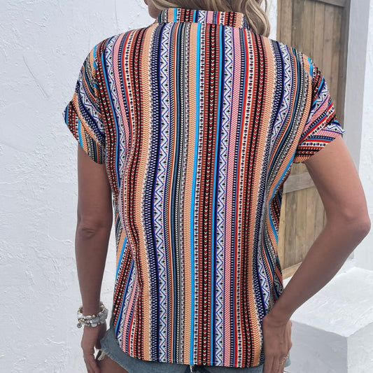 Multicolored Stripe Notched Neck Top