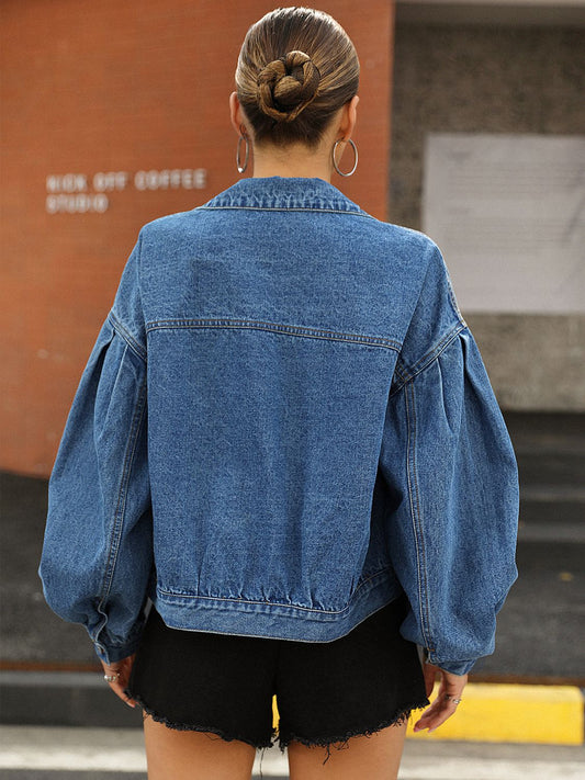 Collared Neck Dropped Shoulder Button-Down Denim Jacket