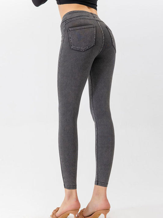 Wide Waistband Slim Fit Back Pocket Sports Leggings