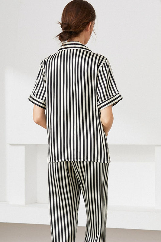 Striped Short Sleeve Shirt, Pants, and Cami Pajama Set