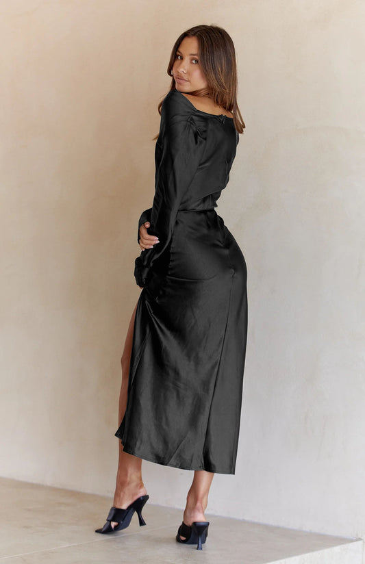Long Sleeve Square Neck Maxi Bodycon Dress