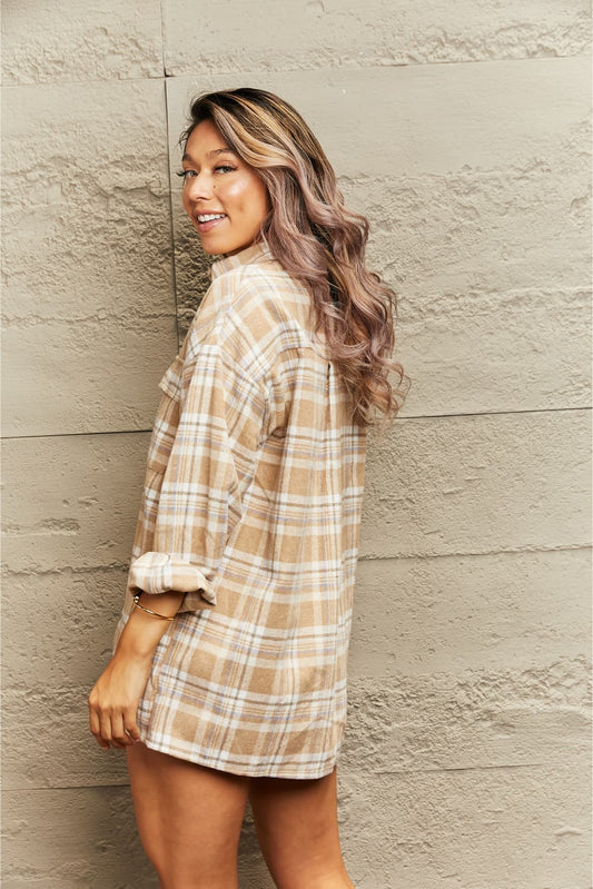 Plaid Longline Shirt Jacket
