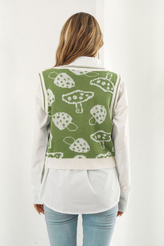 Printed Plunge Neck Sweater Vest