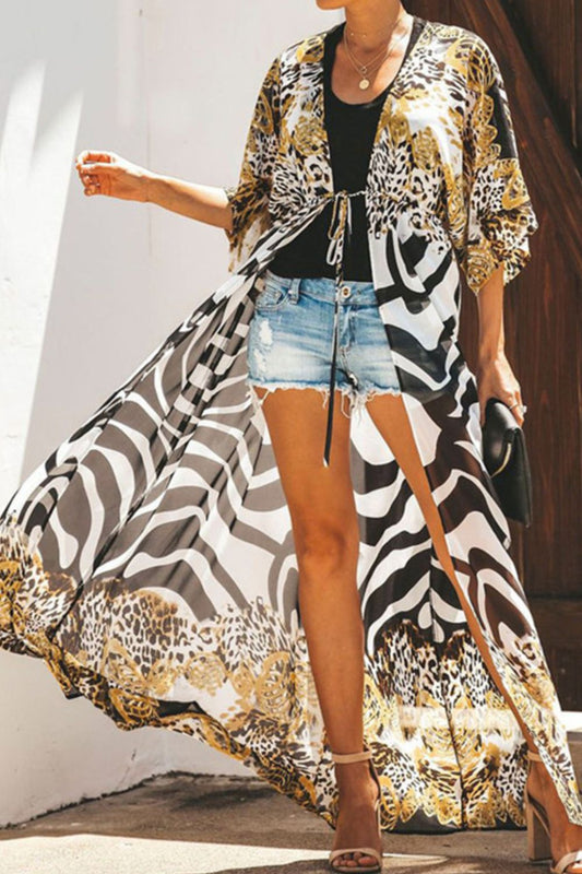 Floral Three-Quarter Sleeve Open Front Cardigan