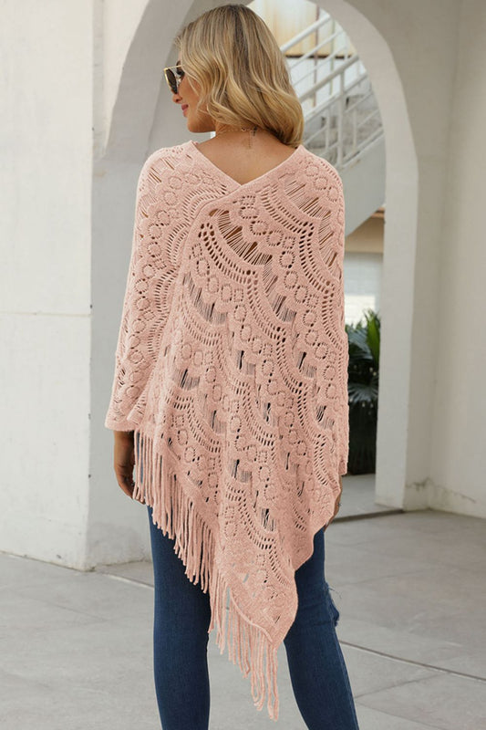 Fringe V-Neck Knit Poncho