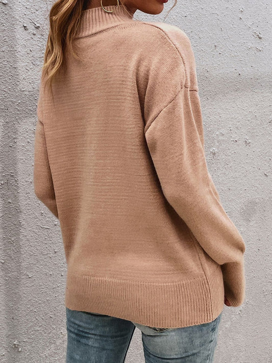 V-Neck Ribbed Dropped Shoulder Sweater